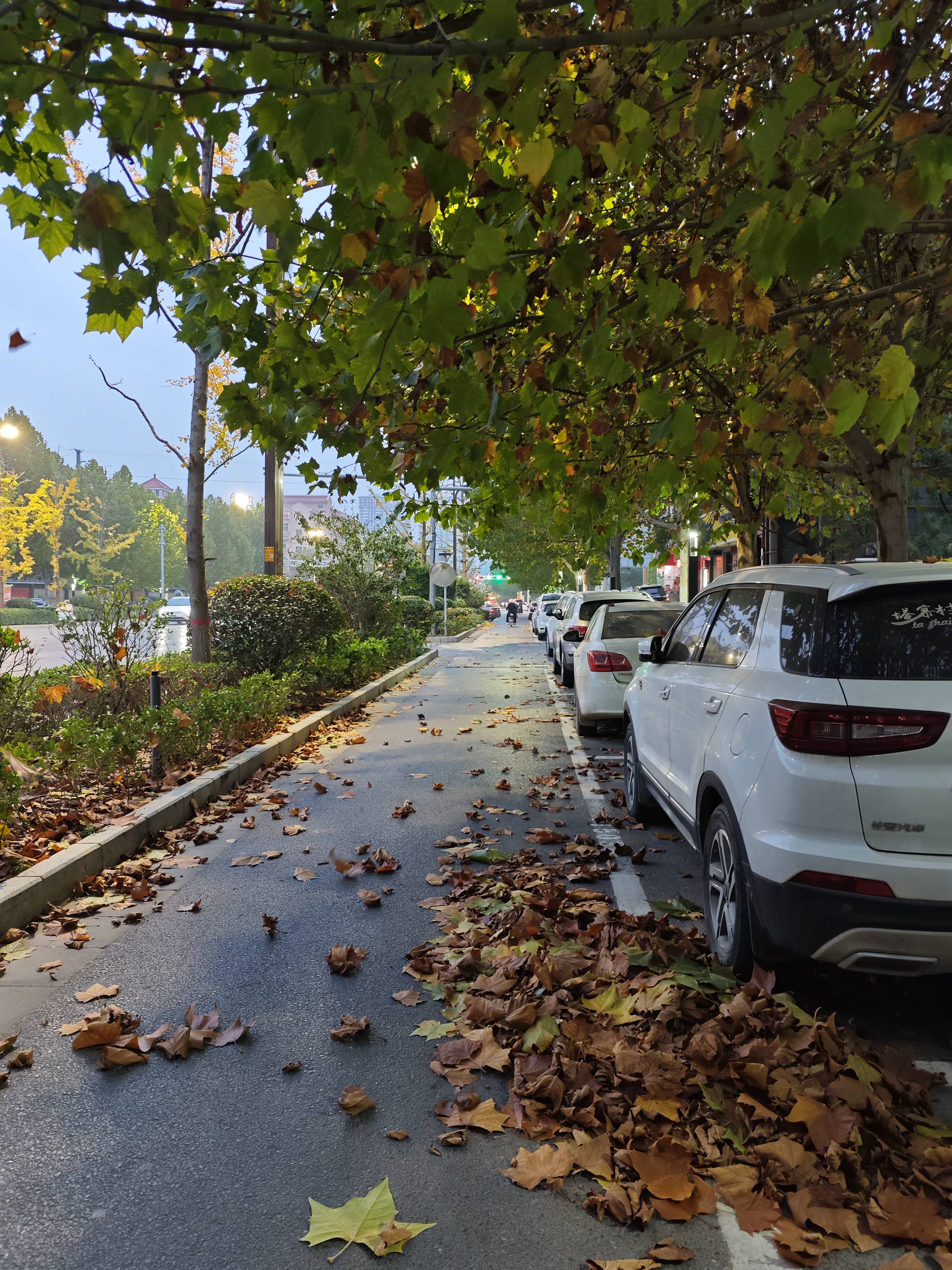 沿着布满红色枫叶与金色银杏叶的蜿蜒小路,邂逅渭南朝阳初冬