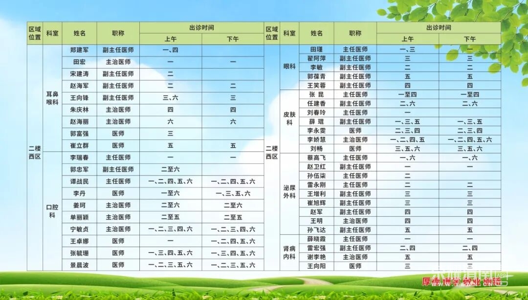 渭南市中心医院中秋节、国庆节门诊医师值班表