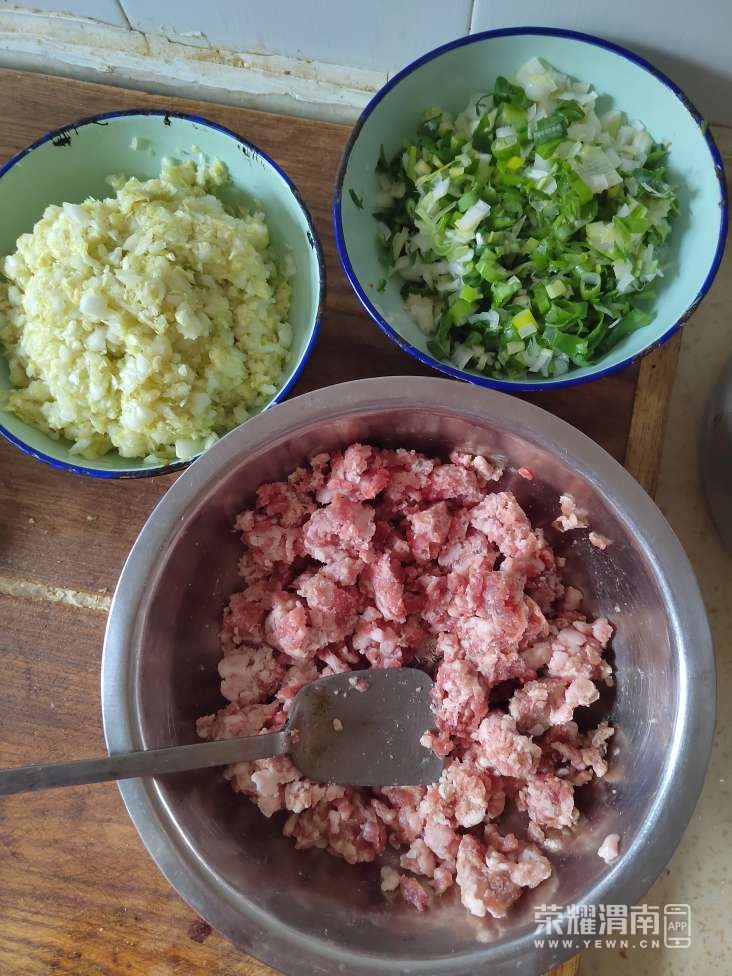 周末遇雨,懒得出门,家里还剩些过年的肉馅与蔬菜,便想着蒸一锅包子。说干就干,先出门吃了口早点,捎回一块豆腐、五根葱,便扎进厨房忙活起来。
