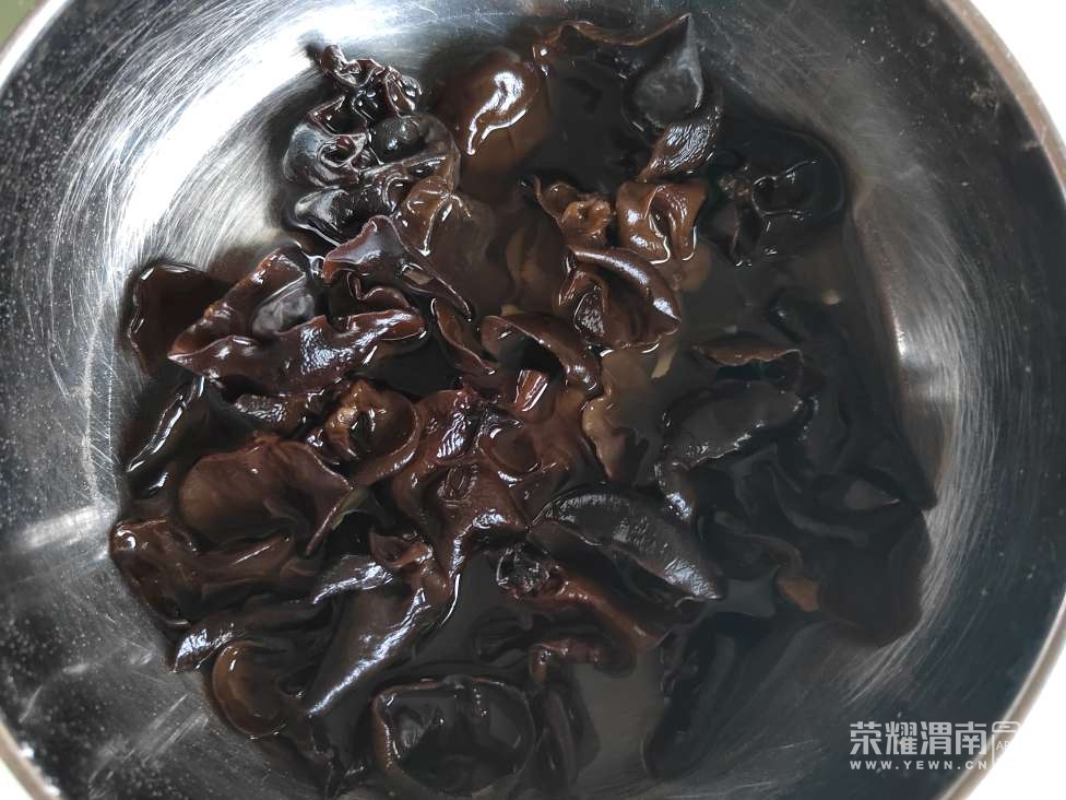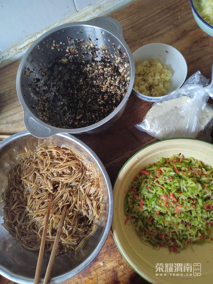 先把冻肉馅从冰箱里掏出来,用铁铲轻轻敲散,撒上一勺盐让它慢慢缓着。接着洗手和面,盖上盖子醒发,再把干香菇、木耳用温水泡上。打开手机里的音乐,调馅的序曲就此拉开。