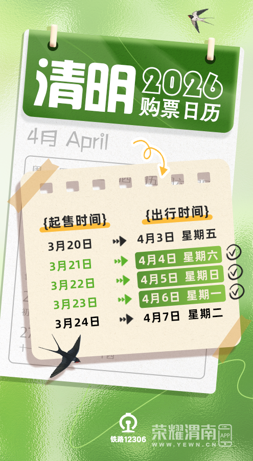 今年清明假期为4月4日至6日,按照提前15天预售的规定,今天(21日)起,全国铁路开始发售清明假期第一天(4月4日)的火车票。