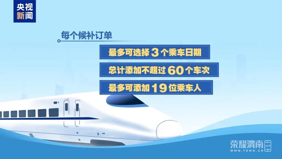 • 每个候补订单最多可选择3个乘车日期,总计添加不超过60个车次;